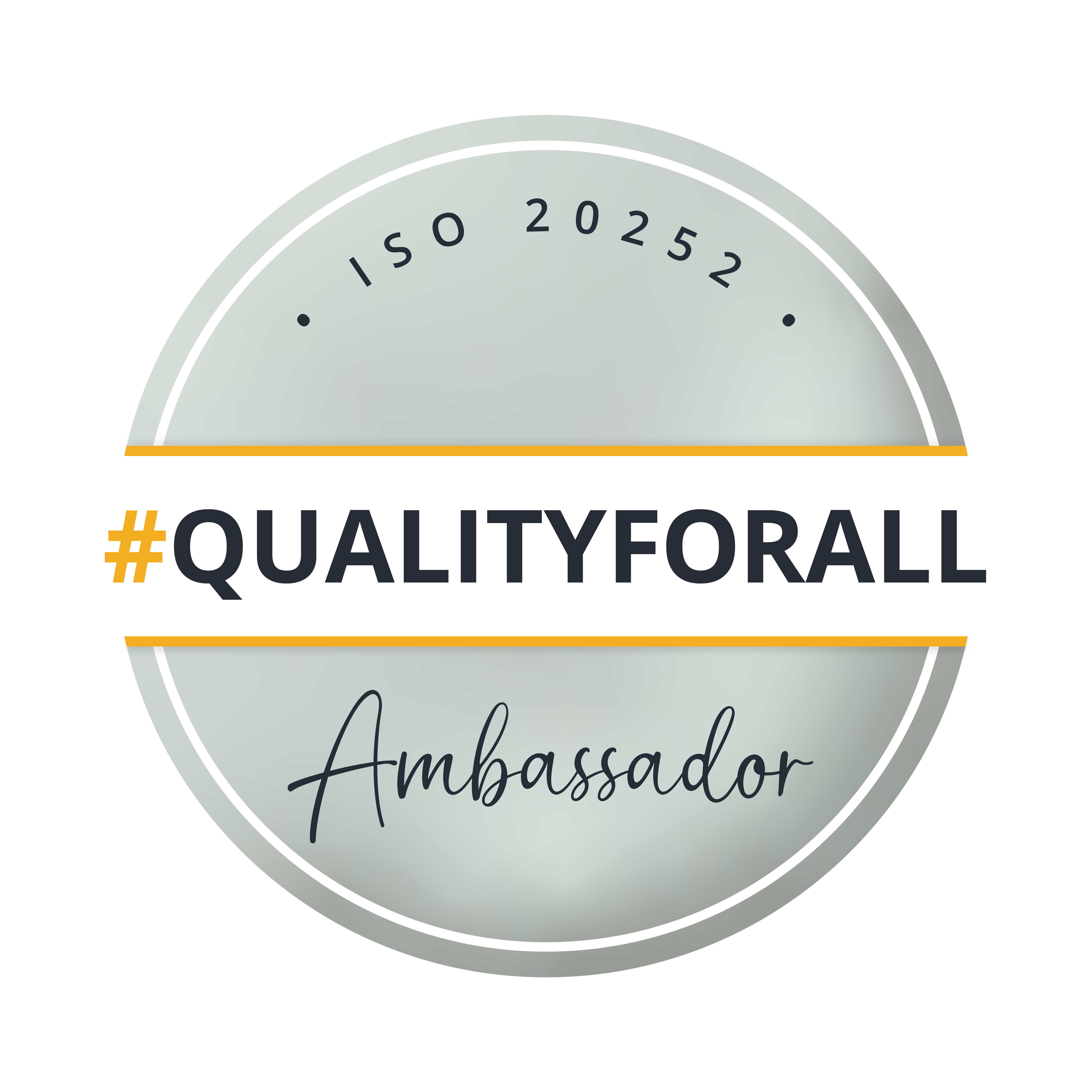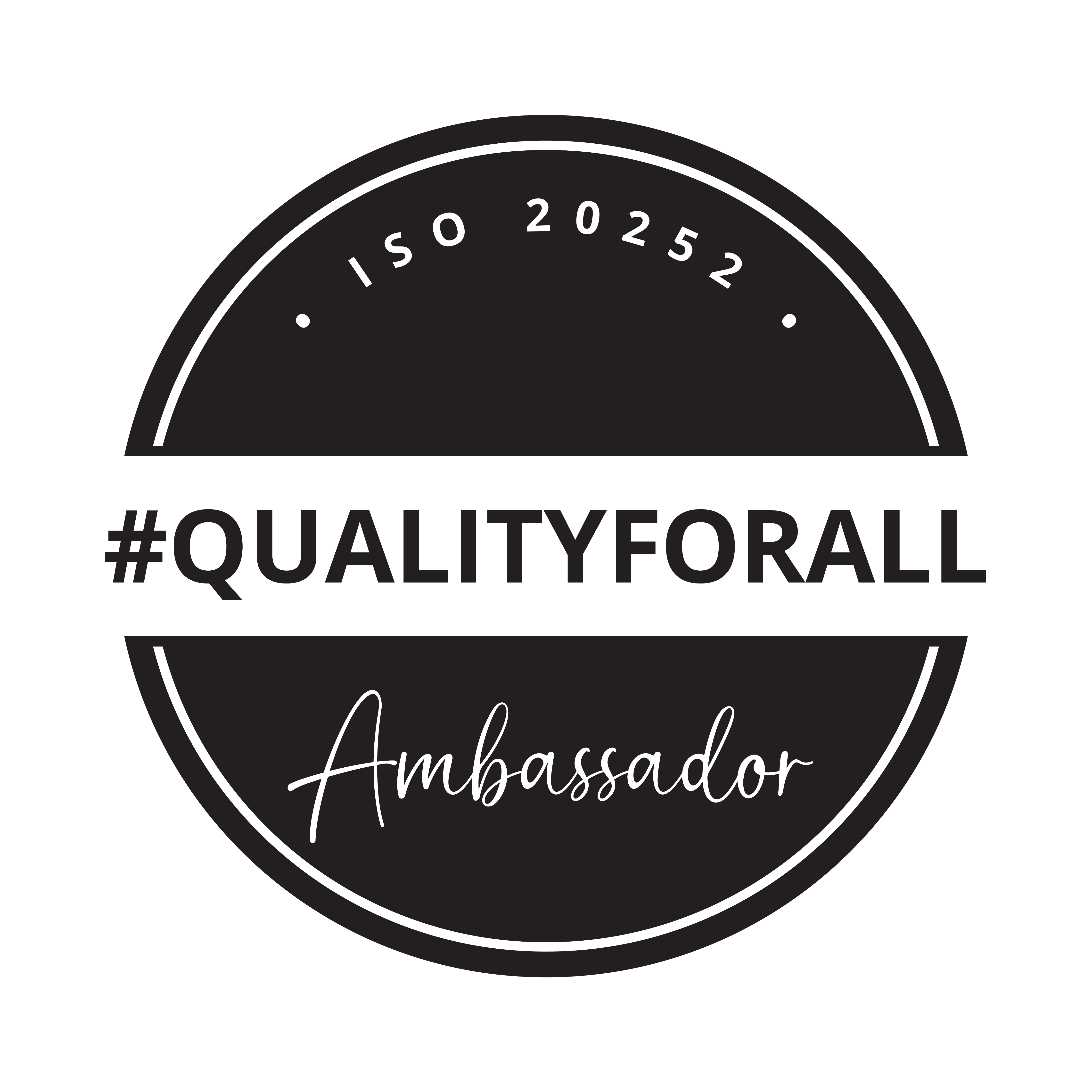 First and foremost, our Ambassadors join the initiative because they believe that the ISO 20252:2019 market research standard has the power to increase quality across our industry. They are passionate advocates for our mission, who can walk the talk. Concurrently, our Ambassadors see the value in publicly promoting their association with ISO 20252 and the #QualityForAll brand.