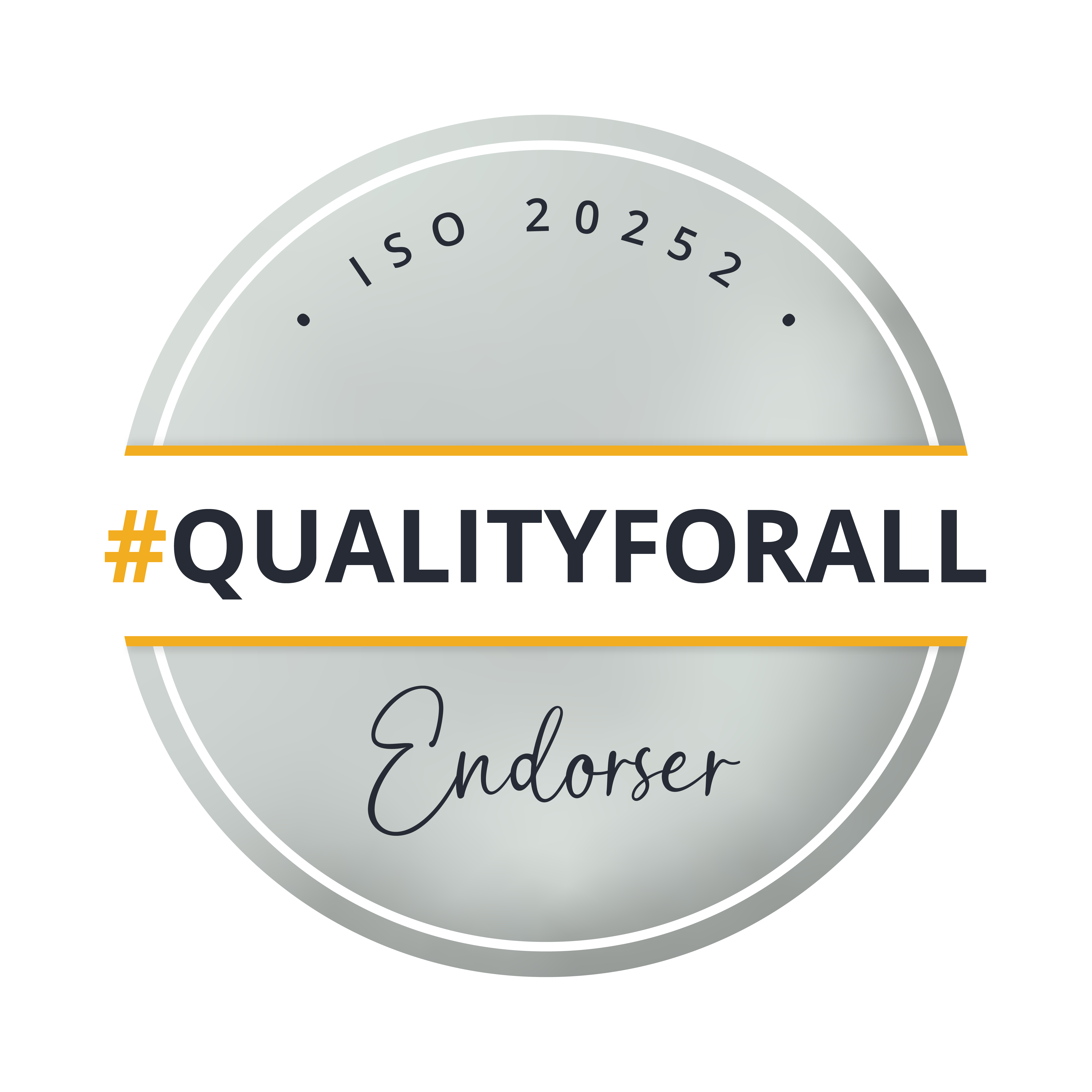 By supporting #QualityForAll, Endorsers reinforce their commitment to increasing quality across the market research and insights industry. Every opportunity available, #QualityForAll marketing materials include our Endorsers’ logos and messaging, to amplify their global reach. #QualityForAll also acts as a connector for our Endorsers, unifying influential organizations worldwide under a single goal.